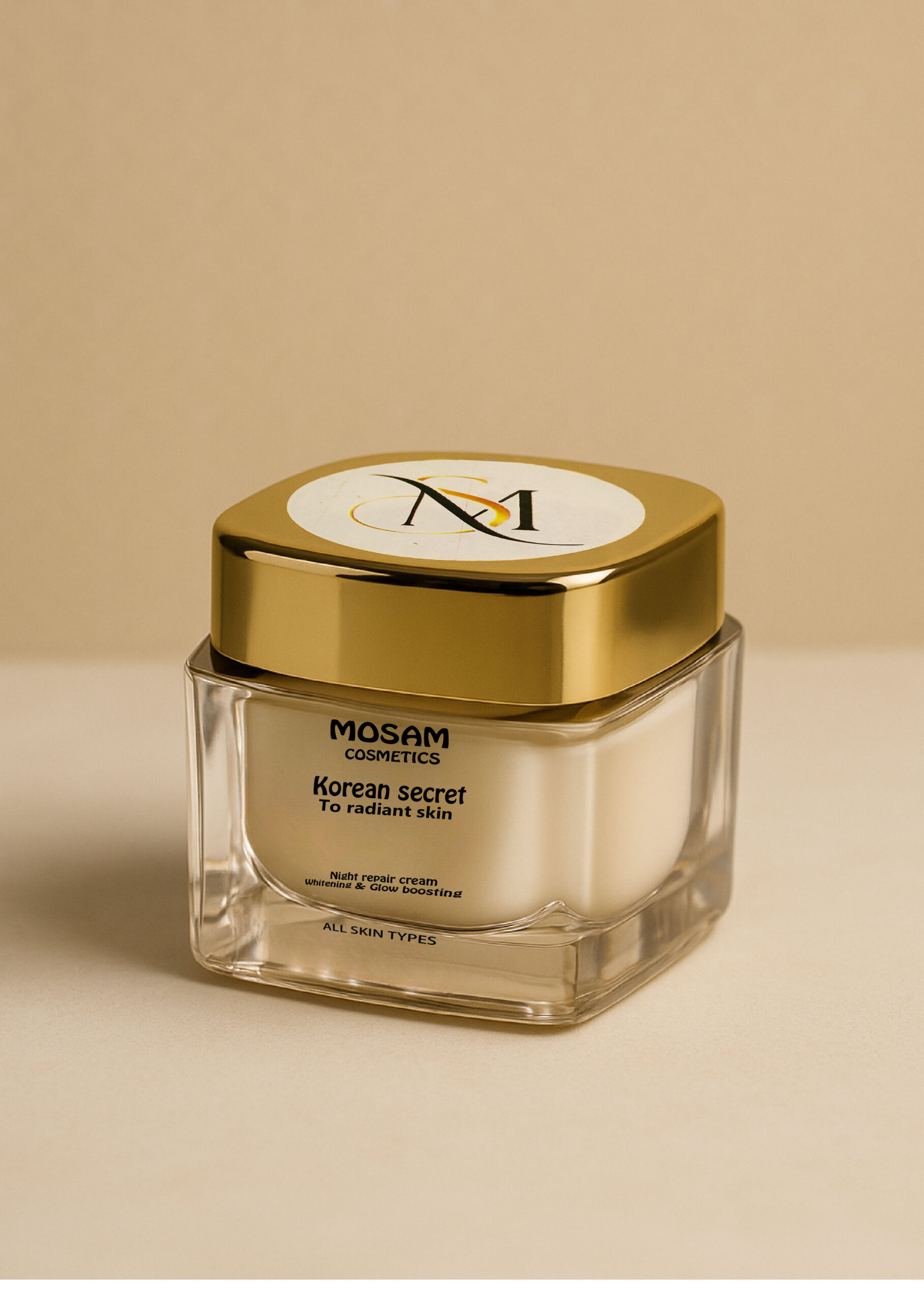 Unveil your natural glow with the Korean Secret Night Repair Cream by MOSAM COSMETICS β a luxurious skin-reviving formula designed for all skin types. Infused with advanced Korean skincare ingredients, this cream deeply nourishes, repairs, and restores your skin overnight. It targets uneven skin tone, dullness, and fatigue to deliver visibly brighter, smoother, and more radiant skin β all while you sleep.